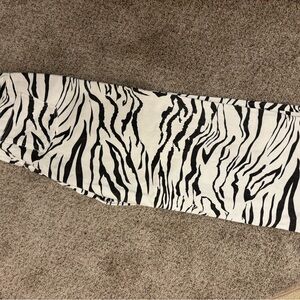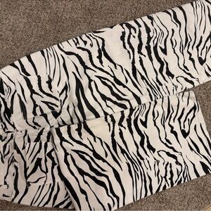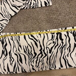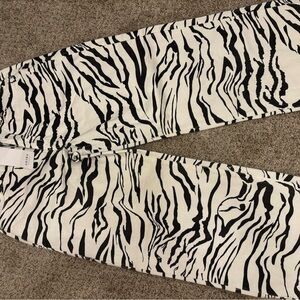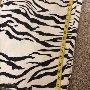 Chic zebra pattern jeans. Bold black and white design. Perfect for a trendy look. Size XL