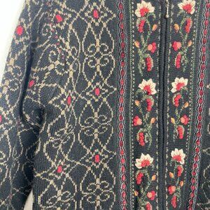 Vintage Icelandic Design 100% wool Floral European Style Zip Jacket Size: M