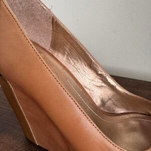 BCBG Colorblock Peeptoe Wedge Size 8 Y2K Genuine Leather
