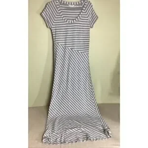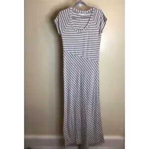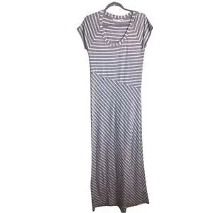 Athleta Women Scoop Neck Striped Maxi Dress Sz.Med EUC Gray Comfortable Athletic