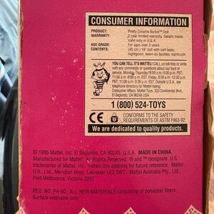 The Barbie Pretty Dreams 18" Soft Body Doll #13611 was manufactured by Mattel in 1995 as part of the Bedtime Barbies series. This collector toy features a blonde, wavy-haired Barbie with blue eyes and a light complexion. The 18-inch doll is an original, licensed reproduction with a soft body, dressed in fashion attire suitable for all occasions, and comes in its original packaging. It is a vintage Barbie with a theme centered around fashion and beauty, making it a sought-after piece for adult collectors of Barbie dolls.