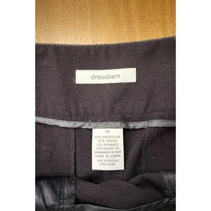 Dressbarn women's black dress pants in size 16, designed for a polished career or office look. These pants feature a classic straight leg silhouette with a flattering fit that transitions easily from professional to business casual wear. Made from a comfortable stretch fabric blend, they offer flexibility while maintaining structure throughout the day. Clean waistband with smooth back pockets for a streamlined appearance. Solid black color makes them versatile and easy to style with blouses, blazers, or knit tops. Ideal for work, meetings, or formal occasions. Pre-owned and in good condition with light signs of wear consistent with normal use. No holes or stains noted.