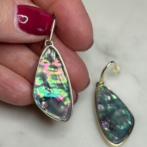 Stunning Kendra Scott earrings with iridescent blue and purple hues. Perfect for any occasion.