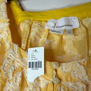 NWT ANTHROPOLOGIE Yvonne Textured Yellow Boho Buttondown Puff Sleeve Blouse Top