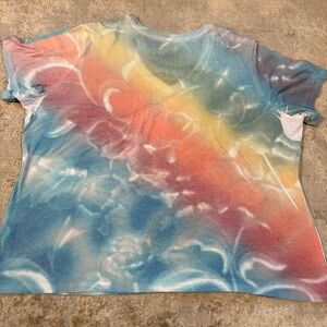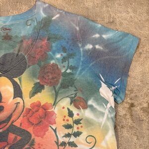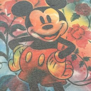 Disney Mickey Mouse Tie Dye Print Multicolor Graphic Tee Size 4X. V neck neckline and short sleeves. Printed in front and back. Printing is done in sublimation effect and therefore is printed on inside of shirt and not in creases of armpits. This is the style of print. Model