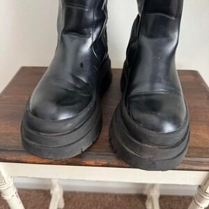 Zara Knee High Black Boot Faux Leather Vegan Size 36 / US 6