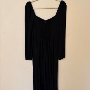 Chic black dress with long sleeves. Features a stylish slit. Perfect for elegant occasions. Size Medium M