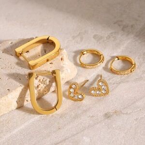 3 Pairs | 18K Gold Plated Earring Set | Waterproof & Sweatproof