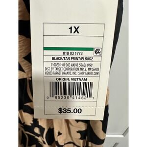 NWT A New Day 1X Black Tan Floral Print Square Neck Midi Dress Tie Back