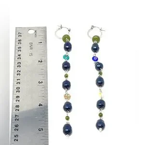New Free People Regina Glass Bead Drop Dangle Earrings Blue Silver