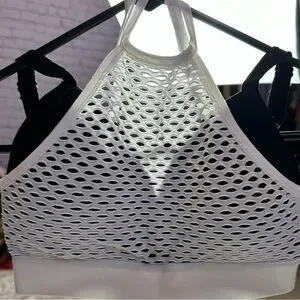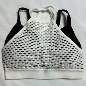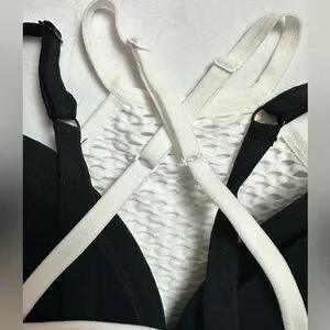 Vesi Star black and white mesh sports bra with crisscross back and adjustable straps. Brand new. Size small
