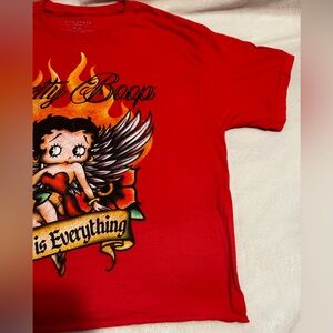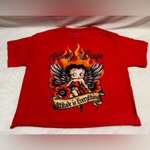 Bold red crop top featuring Betty Boop with wings and flowers. With “ Attitude is everything” on the front. Eye-catching and stylish. Perfect for everyday wear or fans! NWOT never been worn!