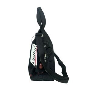 NWT Kipling Miah Medium Size Shoulder Bag with Adjustable Crossbody Strap (Extension 50”). Color: Black. Dual carry Straps. Brand Logo Patch, Monkey Bag Charm. W-11.5 x H-10” x D-4.75”. Top Zip Closure. 2-Front Zip Pockets that extend width of Bag. Great for fast grab items, phone, sun glasses, keys. 2 interior slip pockets, 1 interior Zip Pocket. 2 Pen Holders. Grey Polyester Lined interior. This Bag seems a perfect size. Wide and roomy without adding bulk when worn. All Pics by Seller.