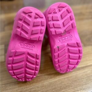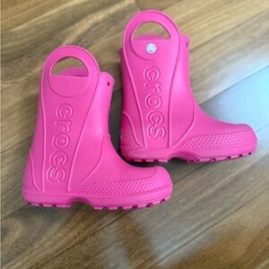Keep your child's feet dry and stylish with these Crocs pink rain boots. Perfect for rainy days and outdoor adventures. Size 10 toddler. Hardly worn.