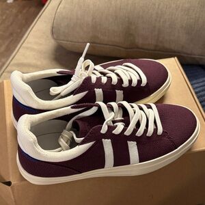 Step out in style with these burgundy and white sneakers. Perfect for casual outings, these shoes offer both comfort and a trendy look.