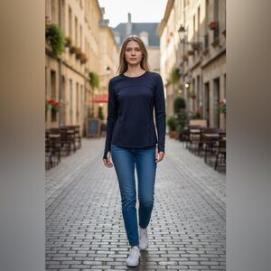 Elegant long sleeve tee. Perfect for everyday comfort. Smooth and flexible fabric and soft too.