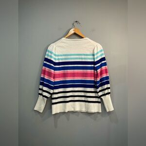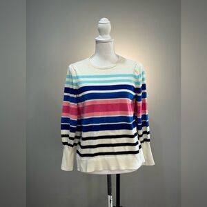 Ivory Talbots Colorful Stripe Crewneck Sweater Size LP EUC