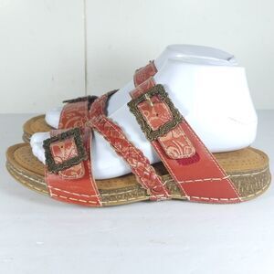 L'artiste by Spring Step Women's Astra EU38 US7,5 Leather Red Hand Painted strappy sandals .