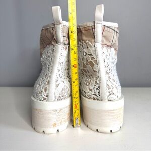 Stylish plaid shoes with lace-up design. Features white ribbon laces and delicate lace detailing. Perfect for a chic look. Beautiful boots but too big, they are a true size 8. I tried on but never worn. Offers are welcome! Thank you.