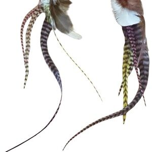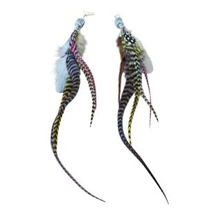 Boho. Handmade Rooster Grizzly Feather Long Color Handmade Earrings #3