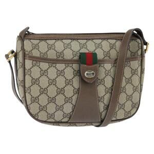 GUCCI GG Supreme Web Sherry Line Bag PVC Beige Gold 89 02 032 Auth 150998
