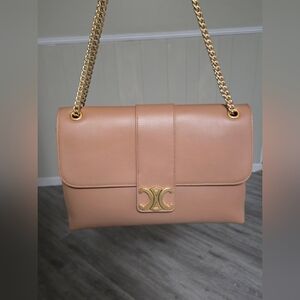 Gorgeous Beige Medium Victoire Style Shoulder Bag that Can Also be Carried as a Crossbody. Beautiful Gold Tone Link Chain Shoulder Strap. Highest Quality