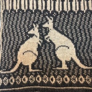 This beautifully crafted knit scarf features a charming kangaroo motif woven into a classic black and cream geometric pattern. Made from a luxurious merino wool and possum blend, it’s exceptionally soft, warm, and lightweight — perfect for cozy winter layering without bulk. The craftsmanship and natural fibres make this a standout cold-weather accessory. Merino Snug is well-known for producing high-quality Australian-made merino and possum knitwear.