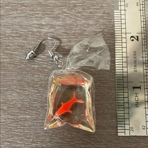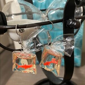 Unique handcrafted earrings. Clear design with striking fake gold fish in side. Nothing says county fair like these ear rings. Whimsical gift for any fish lover Perfect for any occasion.
