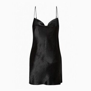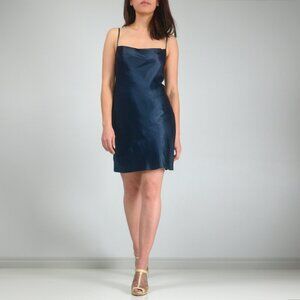 Aritzia Babaton Model Dress, Blue Satin Cowl-Neck Mini, Cami Slip Dress, sz XS
