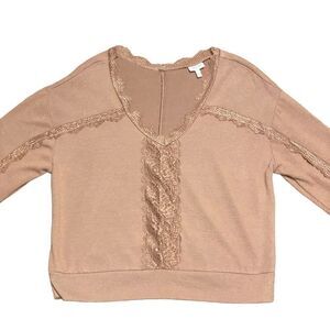 Self E V Neck Long Sleeve Crop Sweater With Lace Trim