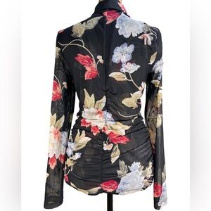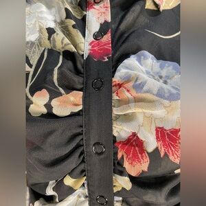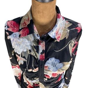 White House Black Market Sheer Sleeve Floral Snap-Up Blouse XS