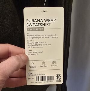Athleta Dark Gray Purana Wrap Sweatshirt XS NWT