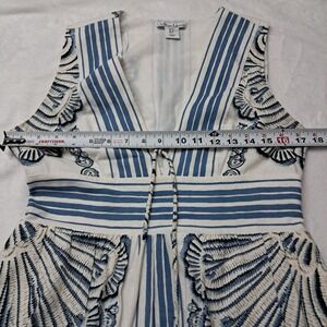 Christian Lacroix Dress Women's Small White Blue Maxi Pockets Linen Blend Vacation Long V Neck Beach Coastal Sleeveless