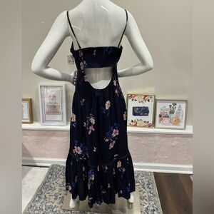 Just as versatile as it is vintage-inspired, this timeless midi dress is featured in a staple strapless design and femme floral print with empire waistline and ruffled bottom hem for added shape and dimension.