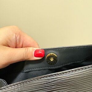 This elegant black Louis Vuitton leather shoulder bag is perfect for any occasion. Its sleek design and high-quality material make it a must-have accessory.