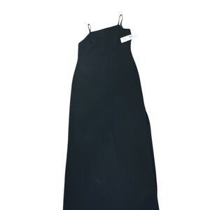 The Palladium Black Maxi Dress is a stunning cocktail piece featuring an asymmetrical cut out design. With its sleeveless spaghetti strap neckline, this slip dress offers a modern and sophisticated look. Perfect for evening events, its sleek silhouette and elegant style make it a standout choice.