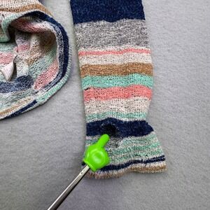 Keywords: striped sweater, hooded top, lightweight knit, henley, pullover, boho, casual, loungewear, colorful stripes, crochet detail, womens fashion, spring top, fall sweater