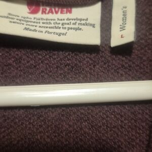 This is a Fjällräven Kaitum women's large hooded fleece jacket in the color"port" which is kind of a purplish wine color. This item is very insulating and is a moisture-wicking fleece that is perfect as a mid-layer for year-round outdoor activities.