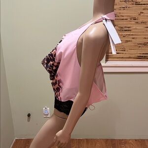 Stylish pink halter top with a bold leopard print.