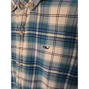 VINEYARD VINES - Boys Plaid Flannel Button Up Shirt Blue Green White Size. M