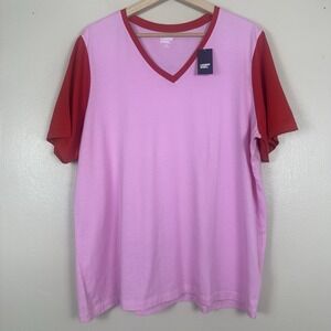New Lands' End Women's 1X Relaxed Supima V-neck Short Sleeve T-Shirt Pink