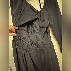 This elegant black dress is perfect for any occasion. Its timeless design and comfortable fit make it a must-have in your wardrobe. Open back with tie.