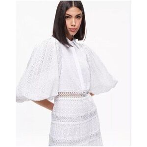 Elegant white dress with intricate texture. Stylish and versatile. Brands new with tags. Inner tag is cut to prevent returns, dress is a SIZE 6, but the tag says size 2. Bought for myself because I thought it was a size 2, but when it arrived, it was a size 6 but mislabeled as a two, unfortunately, too big for me it is so gorgeous. In excellent condition. New never worn