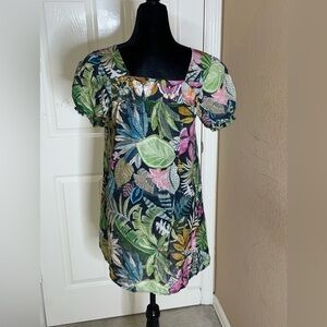 Johnny Was Workshop Tropical Puff Sleeve Tunic Dress in Green Multicolor XS