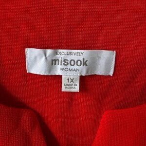 Misook exclusively Red White & Black Colorblock Button Front Cardigan in 1X