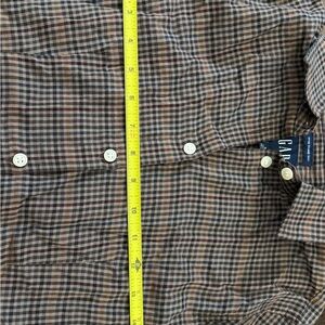 GAP Women’s XS Fitted Cropped Plaid Cotton Button-Up Shirt Brown Blue Beige