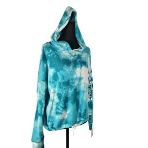 JUSTICE Girls Tie Dye Pullover Hoodie Top Silver Graphic Drawstring Hem Size XL