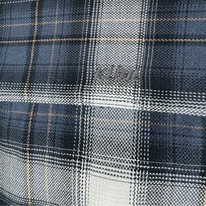 • Key design details: long sleeves with button cuffs, full button-front closure, spread collar neckline, dual chest pockets with button closure, curved hem for layering or untucked wear, blue, gray, and cream plaid pattern, embroidered KÜHL logo detail