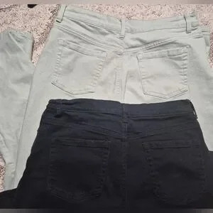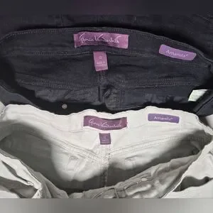My mother was in a size 12 briefly when she lost weight these are slightly less new than the sz 14 bundle I have (those are pretty crisp). This bundle (sz 12 and stretchy) are lightly broken in, just to thenpoint of softness. I see one itty bitty spot (the size of a pin head) on the mint green (picture with my finger points it out for absolute transparency) but I have an eagle eye. Most people would never see it.