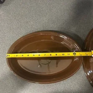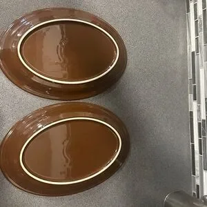 Stylish Fiestaware platters in rich brown. Ideal for serving meals with elegance. Smoke and pet free home. No chips or cracks.